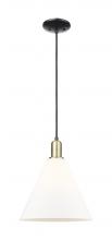 Berkshire Glass - 1 Light - 12 inch - Antique Brass - Matte White shade - Cord hung - Mini Pendant