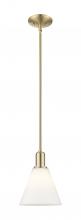 Berkshire Glass - 1 Light - 8 inch - Antique Brass - Matte White shade - Stem hung - Mini Pendant