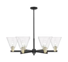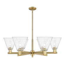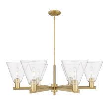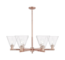 Berkshire Glass - 6 Light - 38 inch - Antique Brass - Stem hung - Chandelier