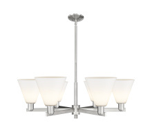 Berkshire Glass - 6 Light - 38 inch - Antique Brass - Matte White shade - Stem hung - Chandelier