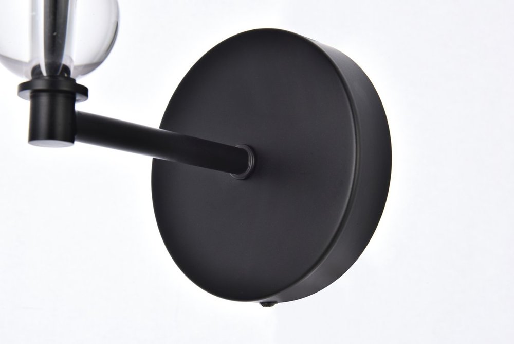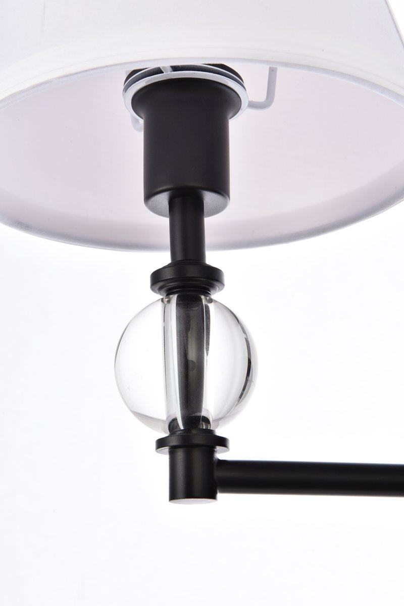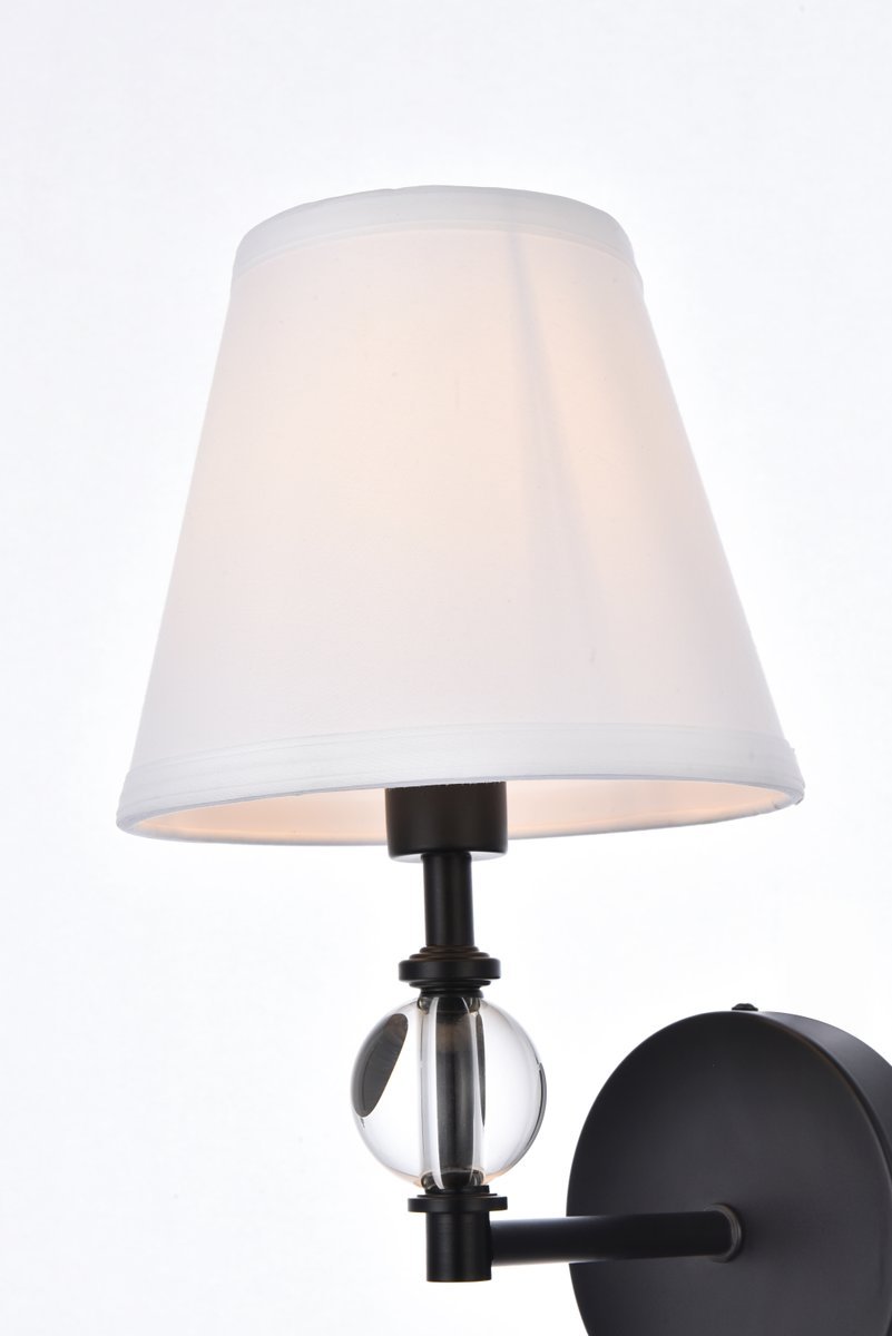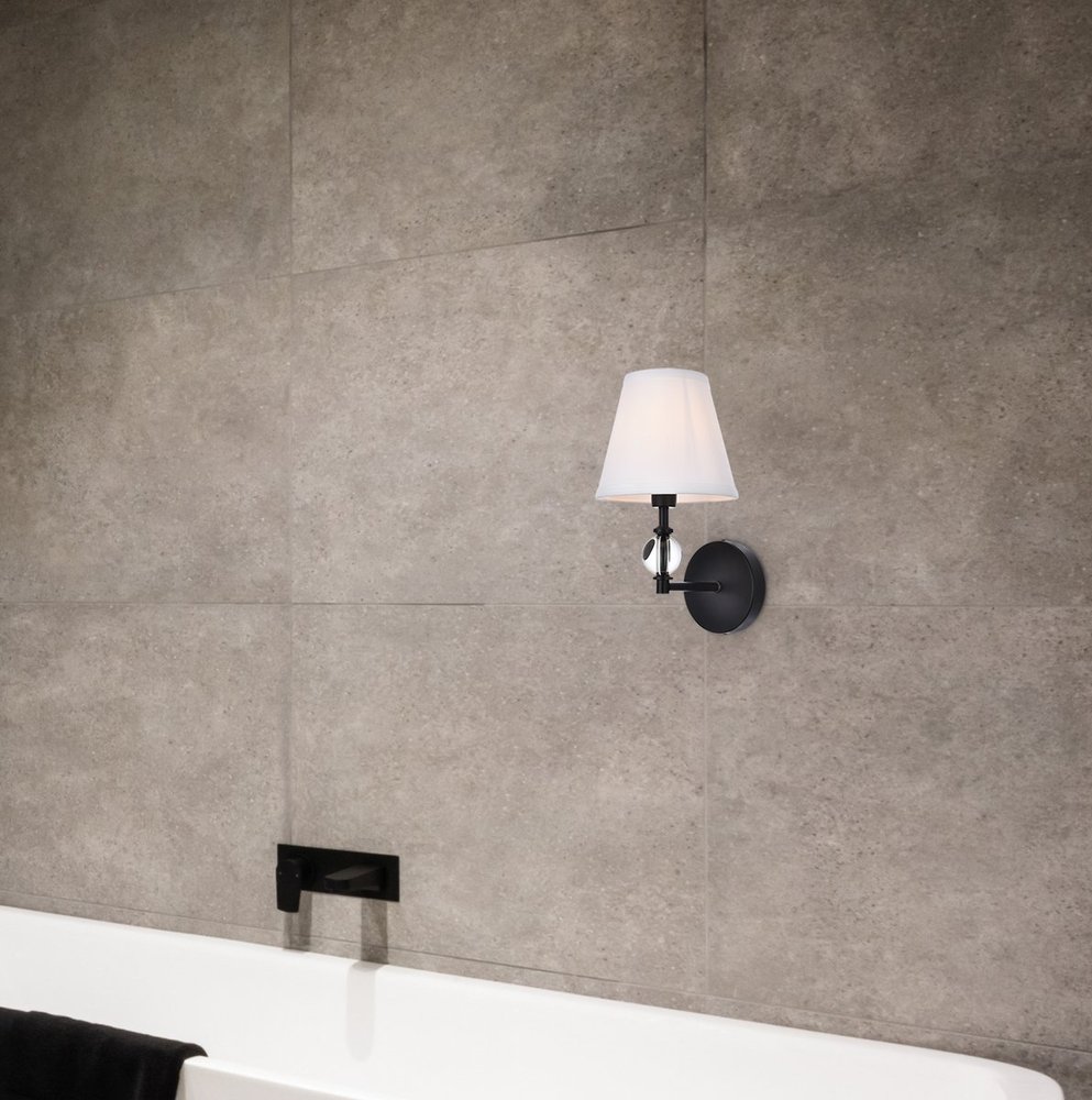 Elegant LD7021W6BK - Bethany 1 light bath sconce in black with white fabric shade