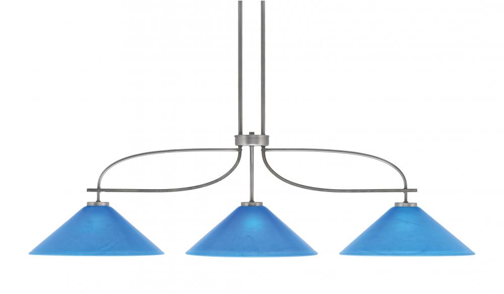 Toltec Lighting 2936-GPDW-415 Monterey 3 Light Bar, Graphite & Painted Distressed Wood-Look Metal Finish, 16 Blue Italian Glass