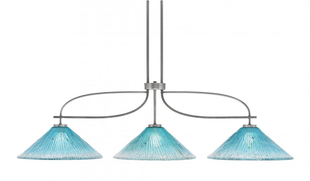 Toltec Lighting 2936-GPDW-715 Monterey 3 Light Bar, Graphite & Painted Distressed Wood-Look Metal Finish, 16 Teal Crystal Glass