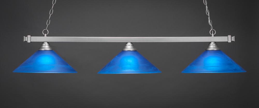 Toltec Lighting 803-BN-415 Square 3 Light Bar Shown In Brushed Nickel Finish With 16 Blue Italian Glass