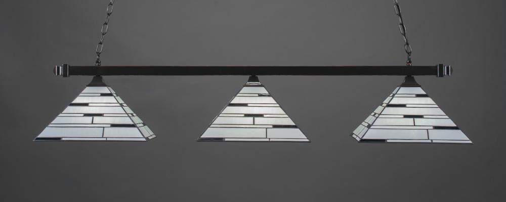Toltec Lighting 403-BC-952 Square 3 Light Bar With Square Fitters With Square Fitters Shown In Black Copper Finish With 14 Pearl Ebony Art Glass