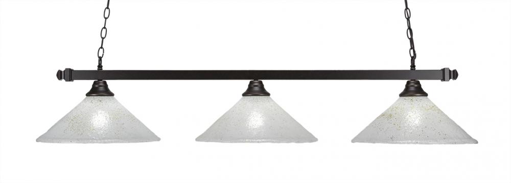 Toltec Lighting 803-DG-714 Square 3 Light Bar Shown In Dark Granite Finish With 16 Gold Ice Glass