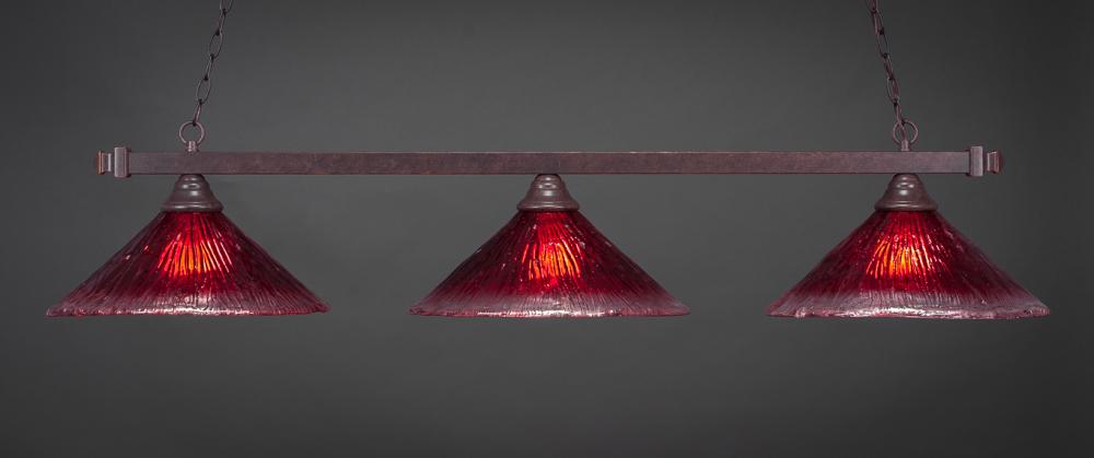 Toltec Lighting 803-DG-716 Square 3 Light Bar Shown In Dark Granite Finish With 16 Raspberry Crystal Glass