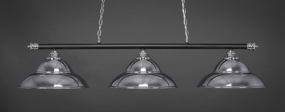 Toltec Company 373-CHMB-5831 - Three Light White Alabaster Glass Chrome/matte Black Pool Table Light