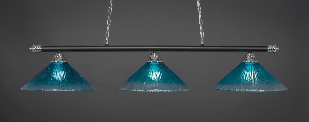 Toltec Lighting 373-CHMB-715 Oxford 3 Light Bar Shown In Chrome & Matte Black Finish With 16 Teal Crystal Glass