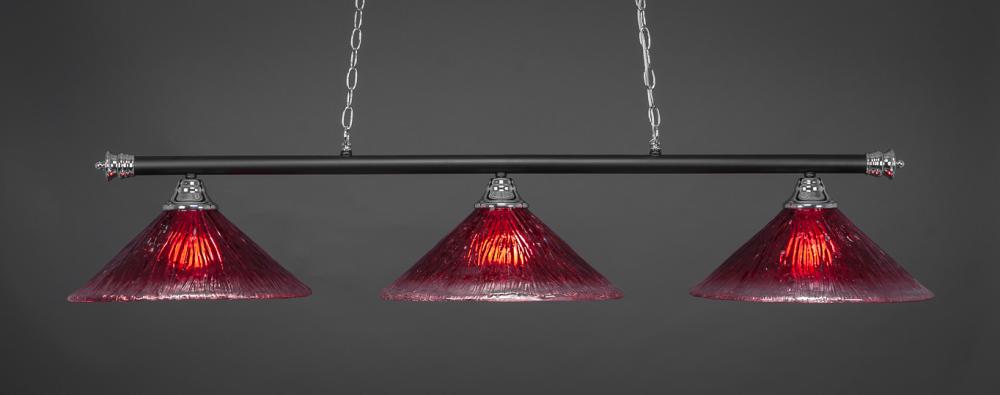 Toltec Lighting 373-CHMB-716 Oxford 3 Light Bar Shown In Chrome & Matte Black Finish With 16 Raspberry Crystal Glass