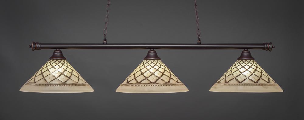 Toltec Company 373-DG-5831 - Three Light Dark Granite White Alabaster Glass Pool Table Light