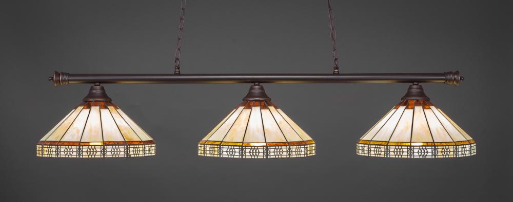 Toltec Lighting 373-DG-964 Oxford 3 Light Bar Shown In Dark Granite Finish With 15 Honey & Brown Mission Art Glass