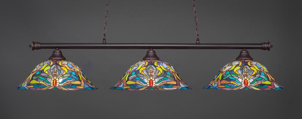 Toltec Lighting 373-DG-990 Oxford 3 Light Bar Shown In Dark Granite Finish With 19 Kaleidoscope Art Glass