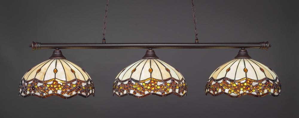 Toltec Lighting 373-DG-997 Oxford 3 Light Bar Shown In Dark Granite Finish With 16 Roman Jewel Art Glass