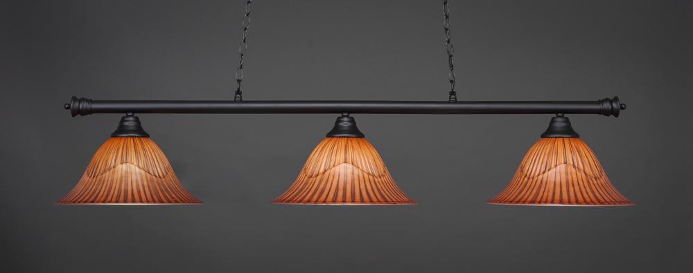 Toltec Lighting 373-MB-58319 Oxford 3 Light Bar Shown In Matte Black Finish With 14 Tiger Glass