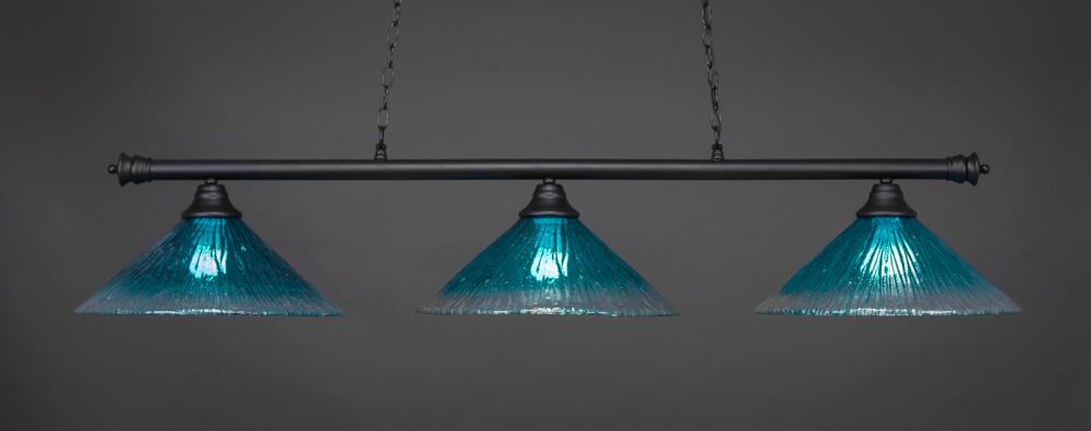Toltec Lighting 373-MB-715 Oxford 3 Light Bar Shown In Matte Black Finish With 16 Teal Crystal Glass
