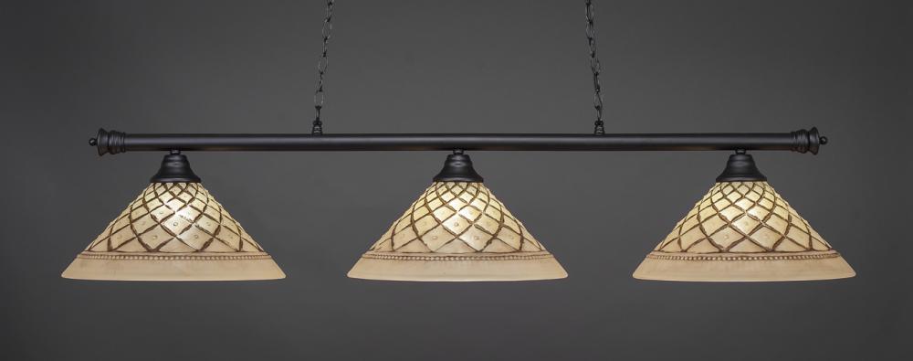 Toltec Company 373-DG-5831 - Three Light Dark Granite White Alabaster Glass Pool Table Light