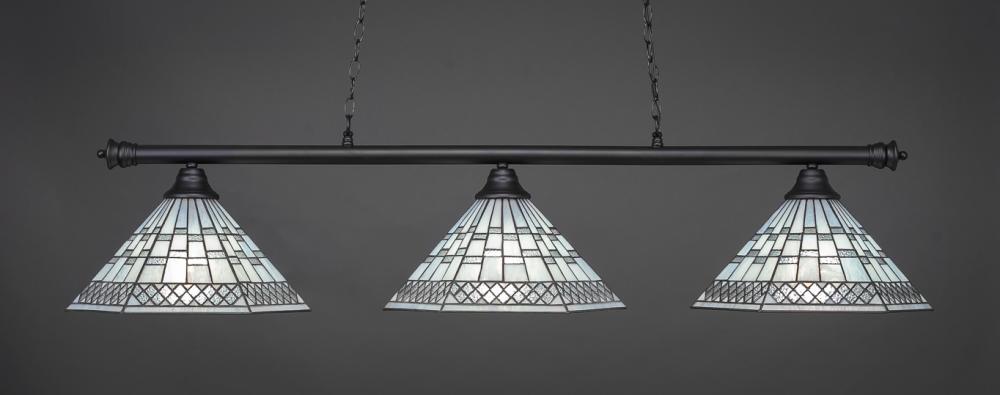 Toltec Company 373-DG-5831 - Three Light Dark Granite White Alabaster Glass Pool Table Light