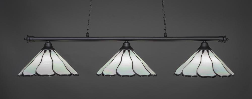 Toltec Company 373-MB-5831 - Three Light White Alabaster Glass Matte Black Pool Table Light