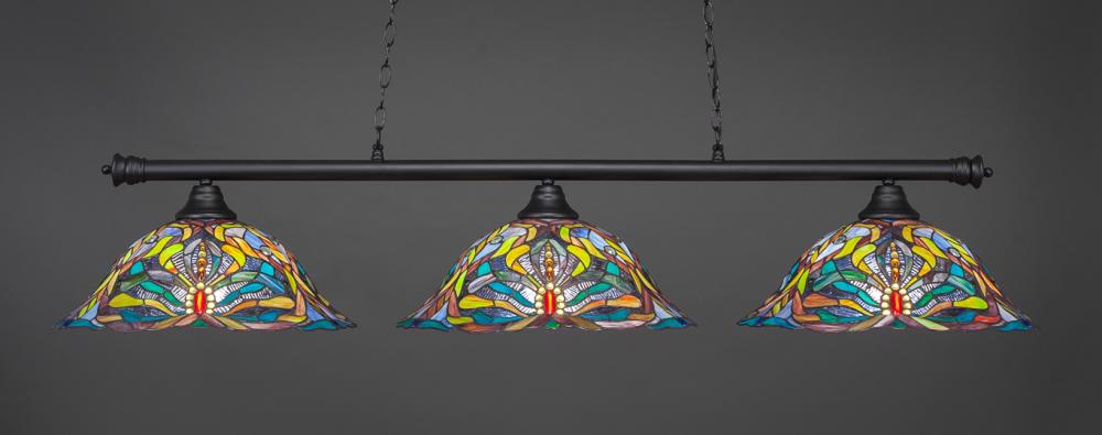 Toltec Company 373-MB-5831 - Three Light White Alabaster Glass Matte Black Pool Table Light