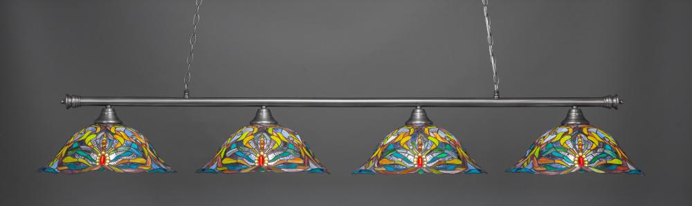 Toltec Lighting 374-BN-990 Oxford 4 Light Bar Shown In Brushed Nickel Finish With 19 Kaleidoscope Art Glass
