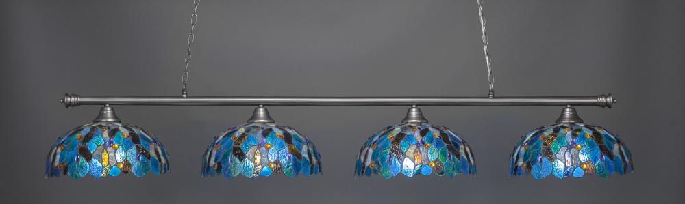 Toltec Lighting 374-BN-995 Oxford 4 Light Bar Shown In Brushed Nickel Finish With 16 Blue Mosaic Art Glass