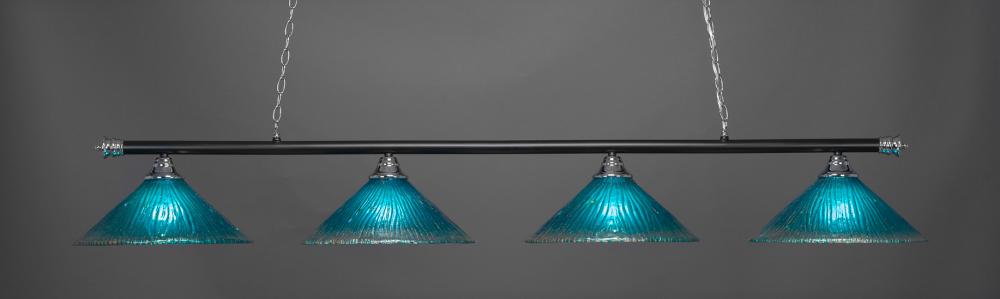 Toltec Lighting 374-CHMB-715 Oxford 4 Light Bar Shown In Chrome & Matte Black Finish With 16 Teal Crystal Glass