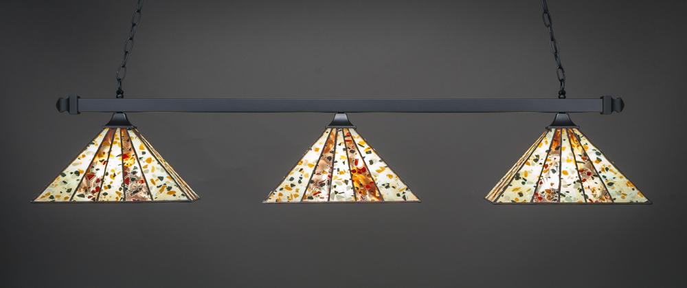 Toltec Lighting 403-MB-956 Square 3 Light Bar With Square Fitters Shown In Matte Black Finish With 14 Fiesta Art Glass