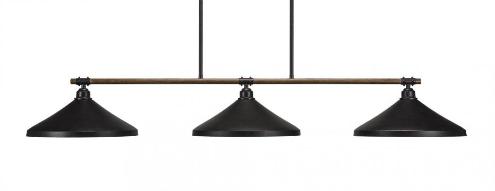 Toltec Lighting 1763-422-DG Blacksmith 3 Light Bar Shown In Painted Wood-look Metal & Dark Granite Finish With 14 Dark Granite Cone Metal Shades