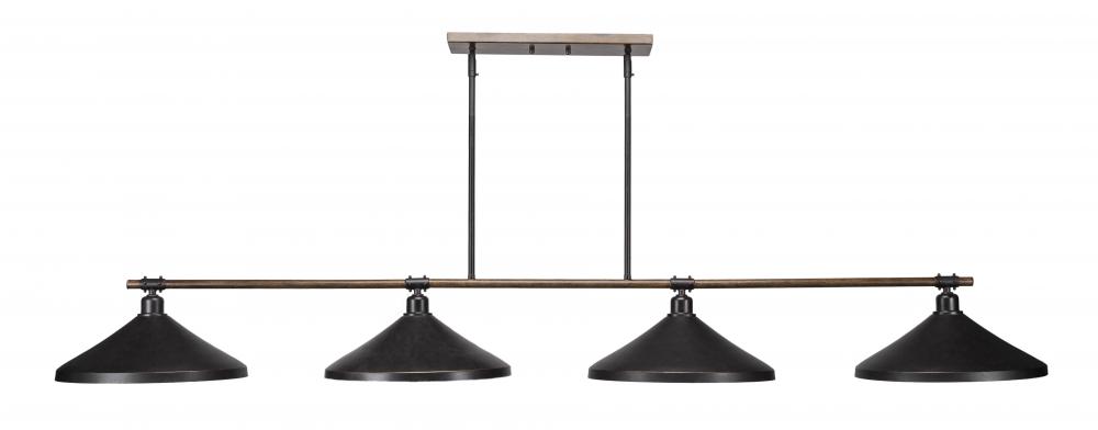 Toltec Lighting 1744-422-DG Blacksmith 4 Light Bar Shown In Painted Wood-look Metal & Dark Granite Finish With 14? Dark Granite Cone Metal Shades