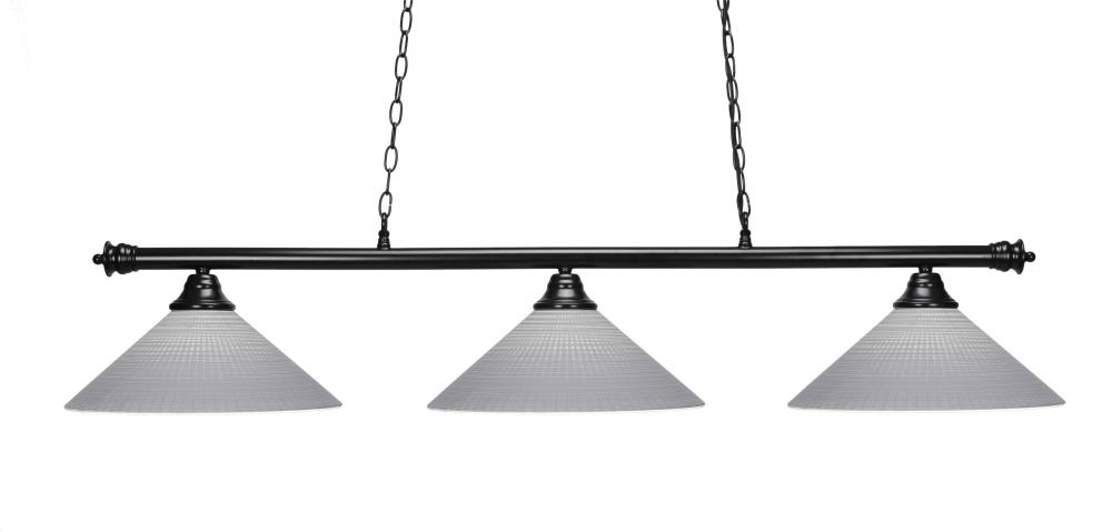 Three Light White Alabaster Glass Matte Black Pool Table Light