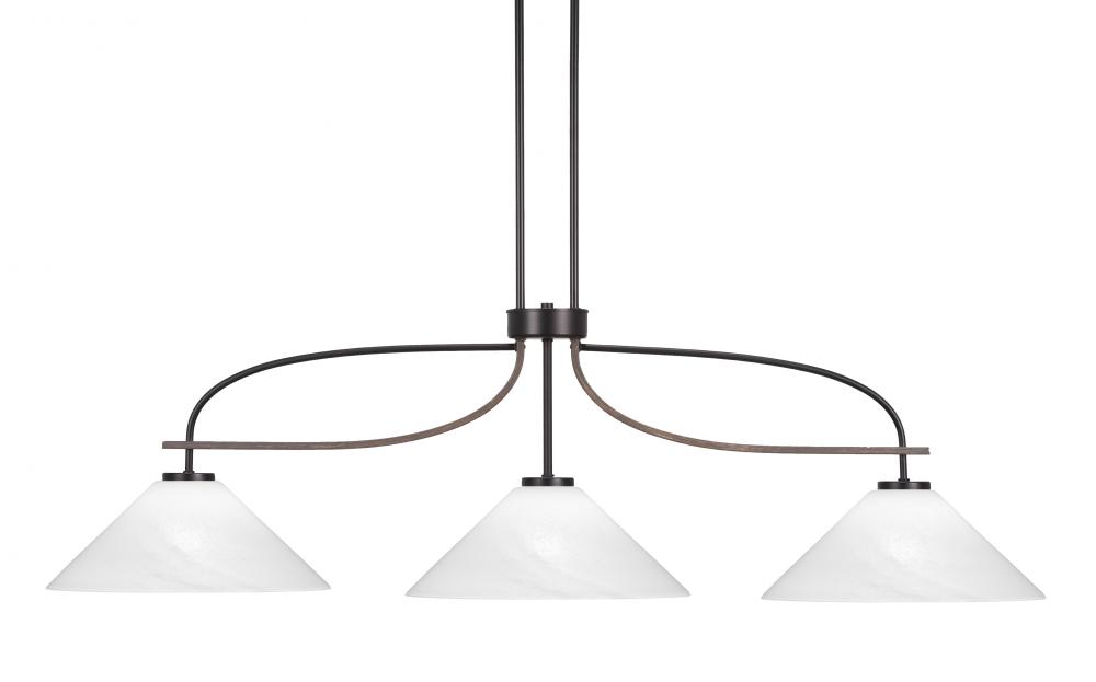 Toltec Lighting 2936-MBDW-2161 Monterey 3 Light Bar Shown In Matte Black & Painted Distressed Wood-look Metal Finish With 16 White Marble Glass