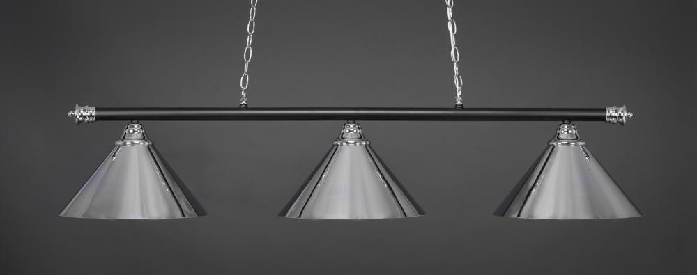 Toltec Lighting 373-CHMB-420-CH Oxford 3 Light Bar Shown In Chrome & Matte Black Finish With 14? Chrome Cone Metal Shades