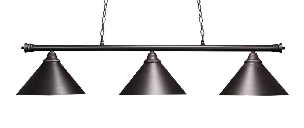 Oxford 3 Light Bar Shown In Dark Granite Finish With 14? Dark Granite Cone Metal Shade