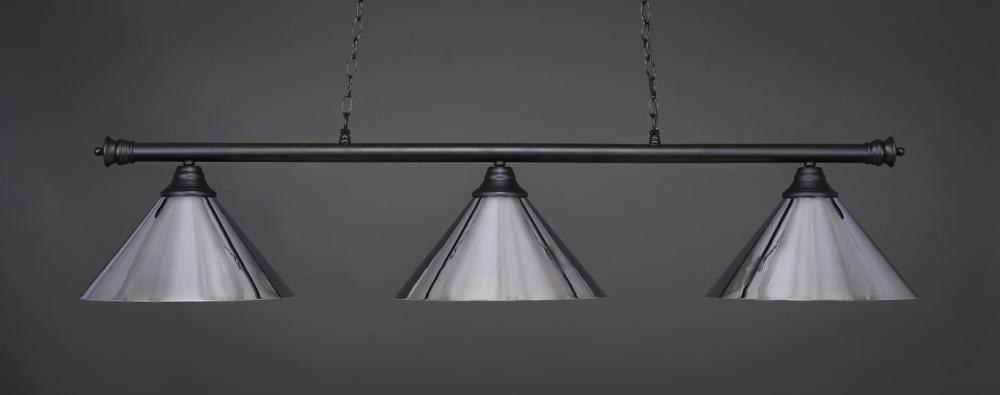 Toltec Lighting 373-MB-420-CH Oxford 3 Light Bar Shown In Matte Black Finish With 14? Chrome Cone Metal Shades