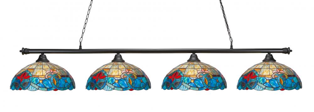 Toltec Lighting 374-MB-935 Oxford 4 Light Bar Shown In Matte Black Finish With 16 Sierra Art Glass