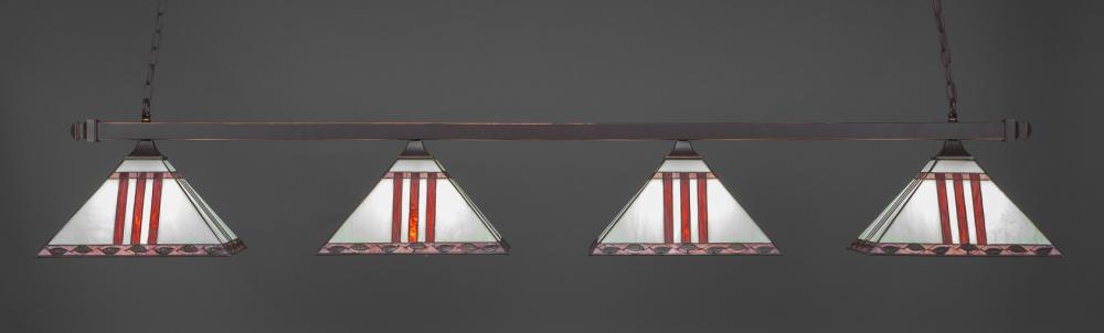Toltec Lighting 404-DG-958 Square 4 Light Bar With Square Fitters Shown In Dark Granite Finish With 14 Purple & Metal Leaf Art Glass