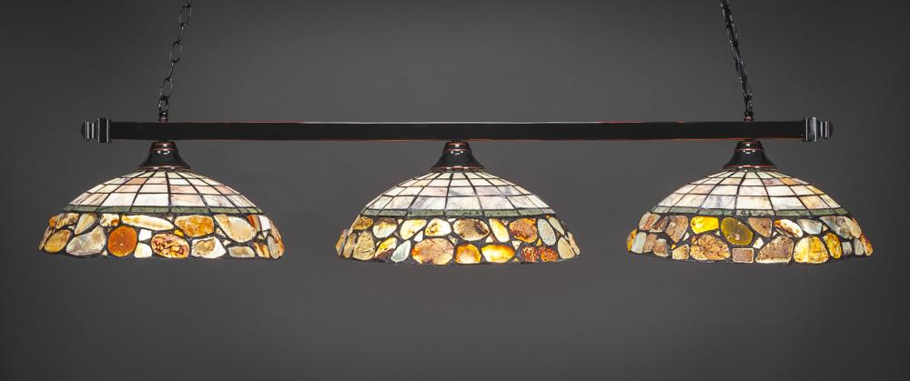 Square 3 Light Bar Shown In Black Copper Finish With 16 Cobblestone Art Glass