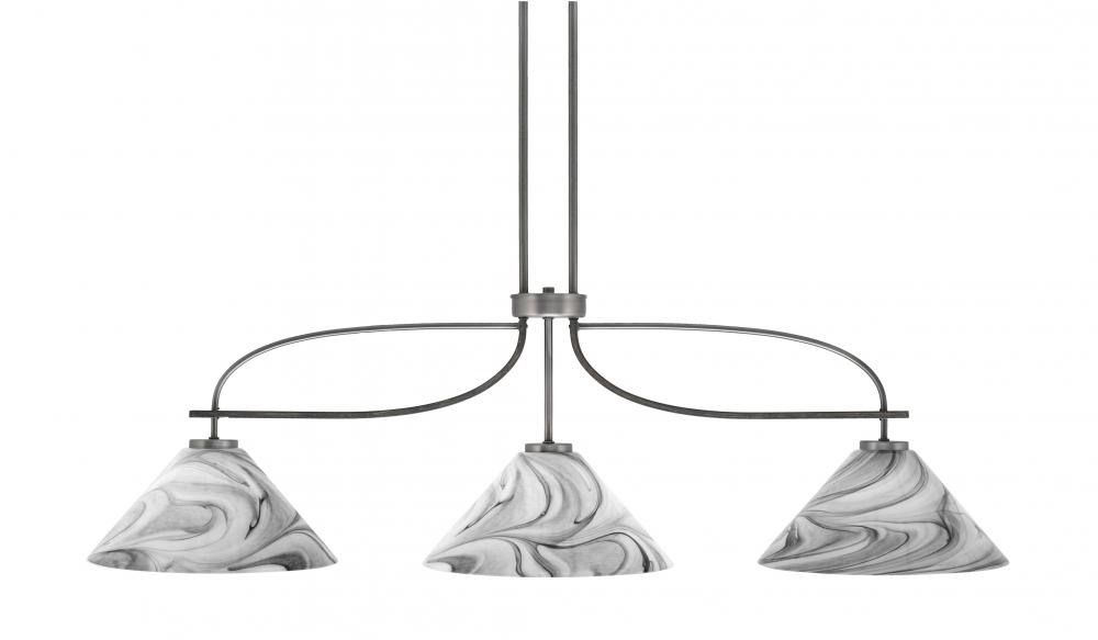 Toltec Lighting 2936-GPDW-2129 Monterey 3 Light Bar Shown In Graphite & Painted Distressed Wood-look Metal Finish With 12 Onyx Swirl Glass