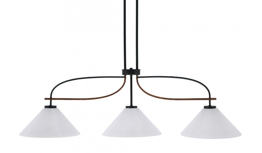 Toltec Lighting 2936-MBWG-2121 Monterey 3 Light Bar Shown In Matte Black & Painted Wood-look Metal Finish With 12 White Marble Glass