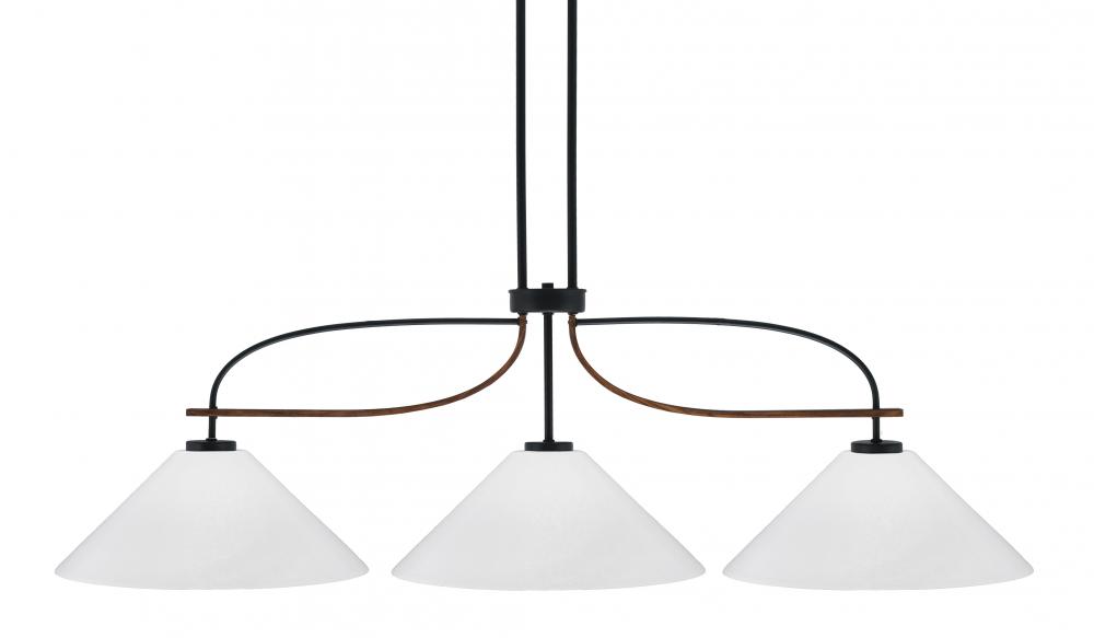 Toltec Lighting 2936-MBWG-2161 Monterey 3 Light Bar Shown In Matte Black & Painted Wood-look Metal Finish With 16 White Marble Glass