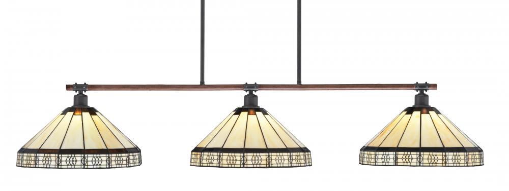 Toltec Lighting 1763-964 Blacksmith 3 Light Bar, Painted Wood-Look Metal & Dark Granite Finish, 15 Honey & Brown Mission Art Glass