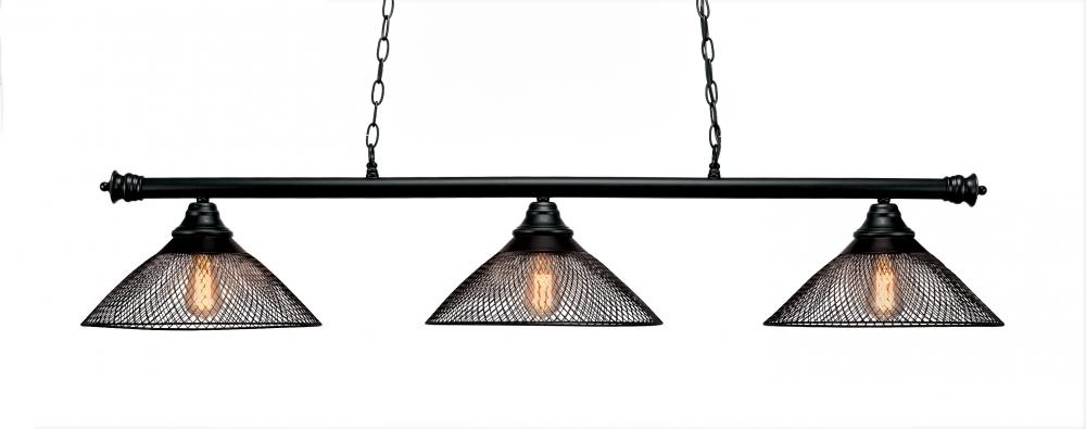 Toltec Lighting 373-MB-808-LED18A Oxford 3 Light Bar, Matte Black Finish, 14 Matte Black Cone Mesh Metal Shades & Amber Led Bulbs
