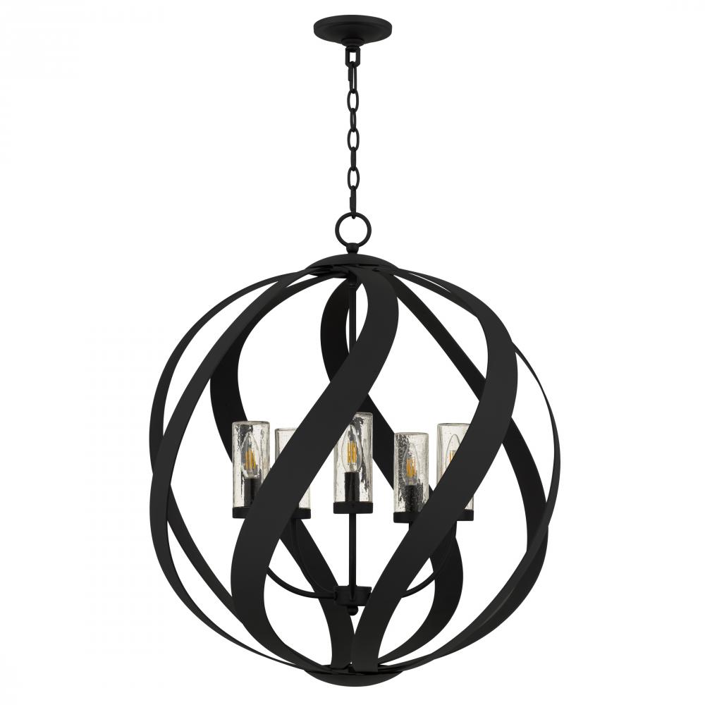Bold yet graceful, the Blacksmith pendant weaves strength and artistry into a single, striking form. Sweeping bands in an earth black finish twist into a sculptural sphere, encircling clear seedy glass shades that shimmer like candlelight through rain-kiss