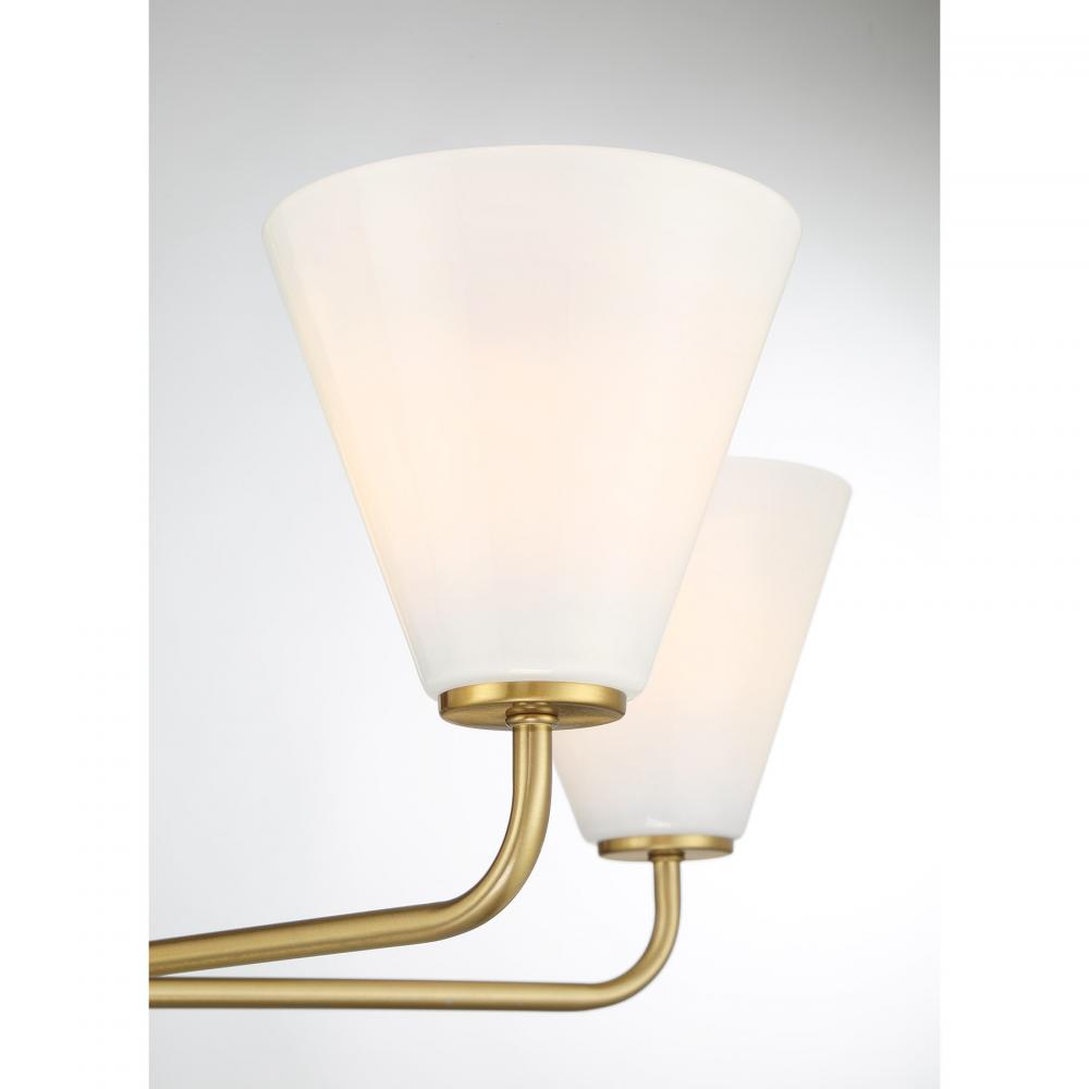 This Savoy House Blair 5-light chandelier is oh so versatile! It can be installed with the lights facing up or down, making it perfect for meeting every lighting need. Slender, sleek arms are finished in Warm Brass and topped with shades of spectacularly swirling strie glass. Blair is 30" in width and has an adjustable height ranging from 9.25" to 63.25". Uses five standard size bulbs of up to 60 watts per bulb. Bulbs not included. Comes with four 12" downrods and one 6" downrod.