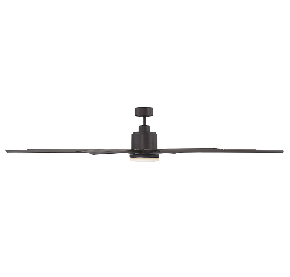 When you have a large area to keep cool and comfortable, and you want to do it with style, choose this Savoy House Bluffton ceiling fan. The handsome, streamlined, contemporary design suits most decor and the dark English bronze finish looks terrific with your other hardware and color schemes. An impressive 72" blade span, a six-speed reversible motor and eight slim blades combine for a ceiling fan with powerful temperature control. Plus, an integrated fan light kit with a 16W LED bulb and a white frosted glass shade is included. A full function handheld remote is also included. Bluffton brings stylish comfort and illumination in one fabulous fixture.