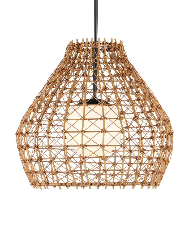 The crisscross pattern on the shade of the Bly Outdoor Pendant is made of all-weather wicker that can easily withstand the elements, as will the metal hardware in a black powder-coated finish. The intricacy achieved on the woven fixture makes the large-scale pattern very artisanal for an outdoor pendant. The single-light fixture is wet location-tested, which makes it ideal for lighting patios and porches, and the sophistication of the design will bring greater beauty to a large outdoor space when hung in multiples. Adjustable from 25" to 66.5" with use of included chain/rod kit/cable. If your space calls for a longer drop, additional chain/rods/cable is available for purchase.