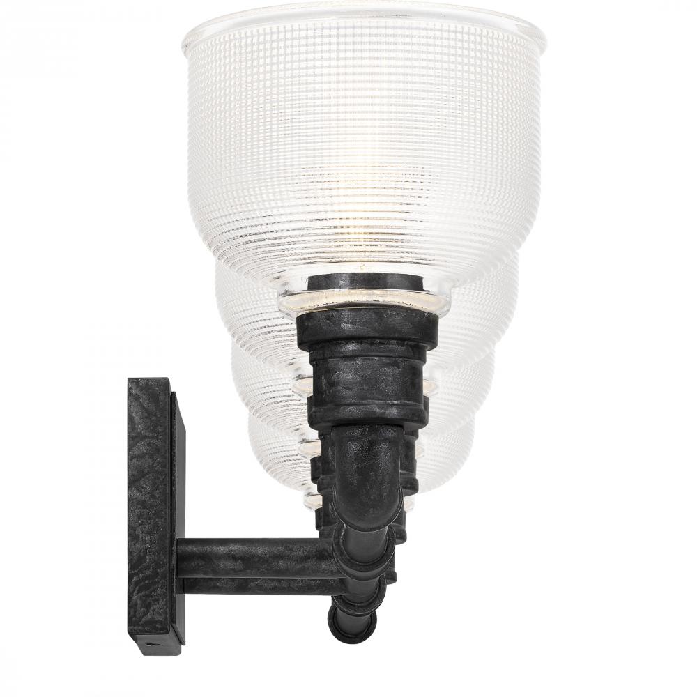 The Boomer collection is a must-have for rustic and industrial spaces alike. The pipe-inspired silhouette, finished in Old Black, creates a bold presence in any bathroom. Clear prismatic glass shades add a hint of additional flair while conveying just the