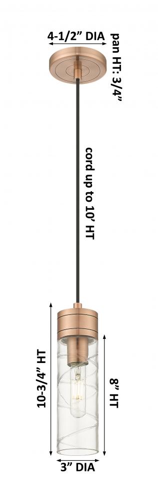 Boreas - 1 Light - 3 inch - Antique Copper - Cord Hung - Mini Pendant