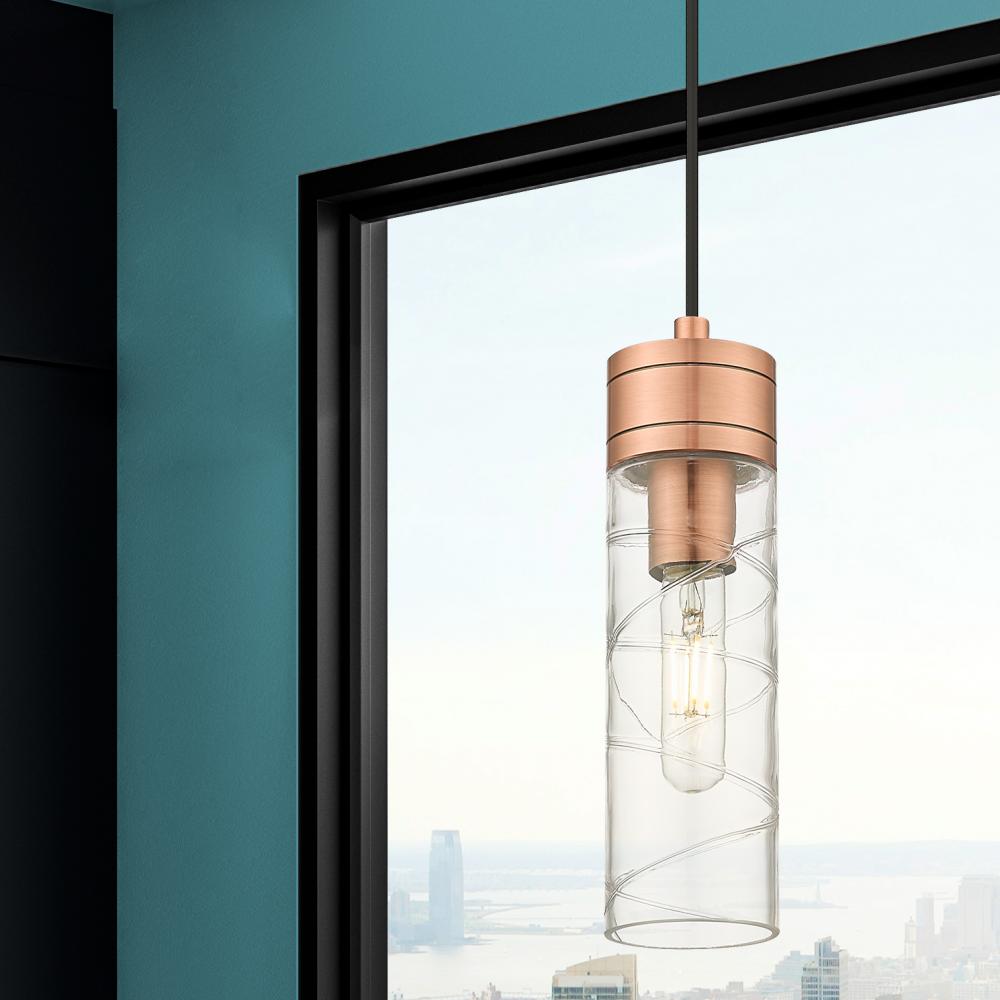 Boreas - 1 Light - 3 inch - Antique Copper - Deco Swirl Shade - Cord Hung - Mini Pendant